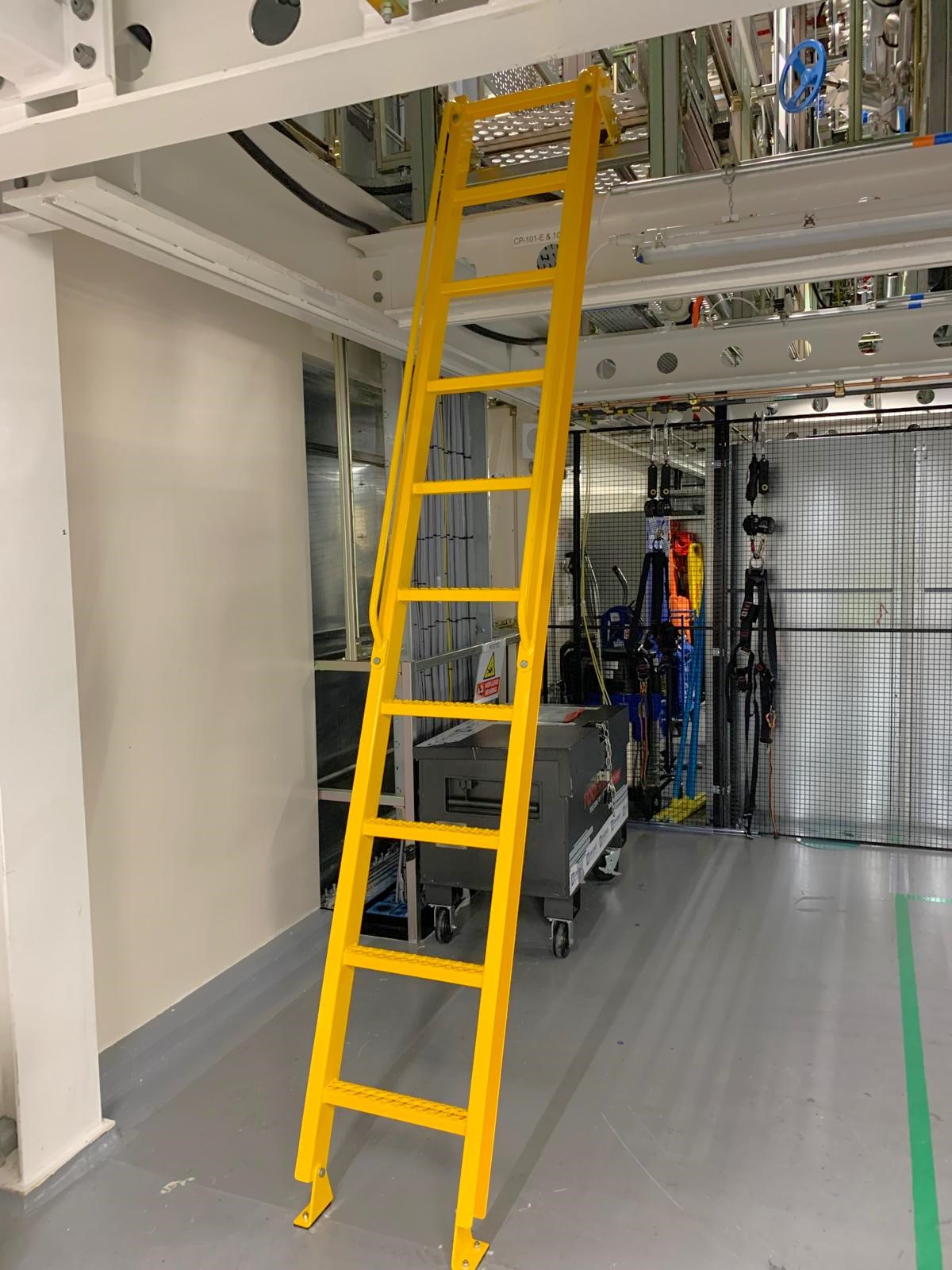 Fabrication took place offsite in our steel fabrication facility. All steelwork was hot dipped galvanise, chosen for its corrosion-resistant properties before being finished in a Signal Yellow powder coat, suitable for the SubFab clean protocol setting. Each component was fabricated with precision and rigorously inspected to meet the clients’ strict standards. Upon completion, the ladders underwent expert installation by skilled professionals, who ensured precise alignment and a clash free integration to the existing catwalk system.