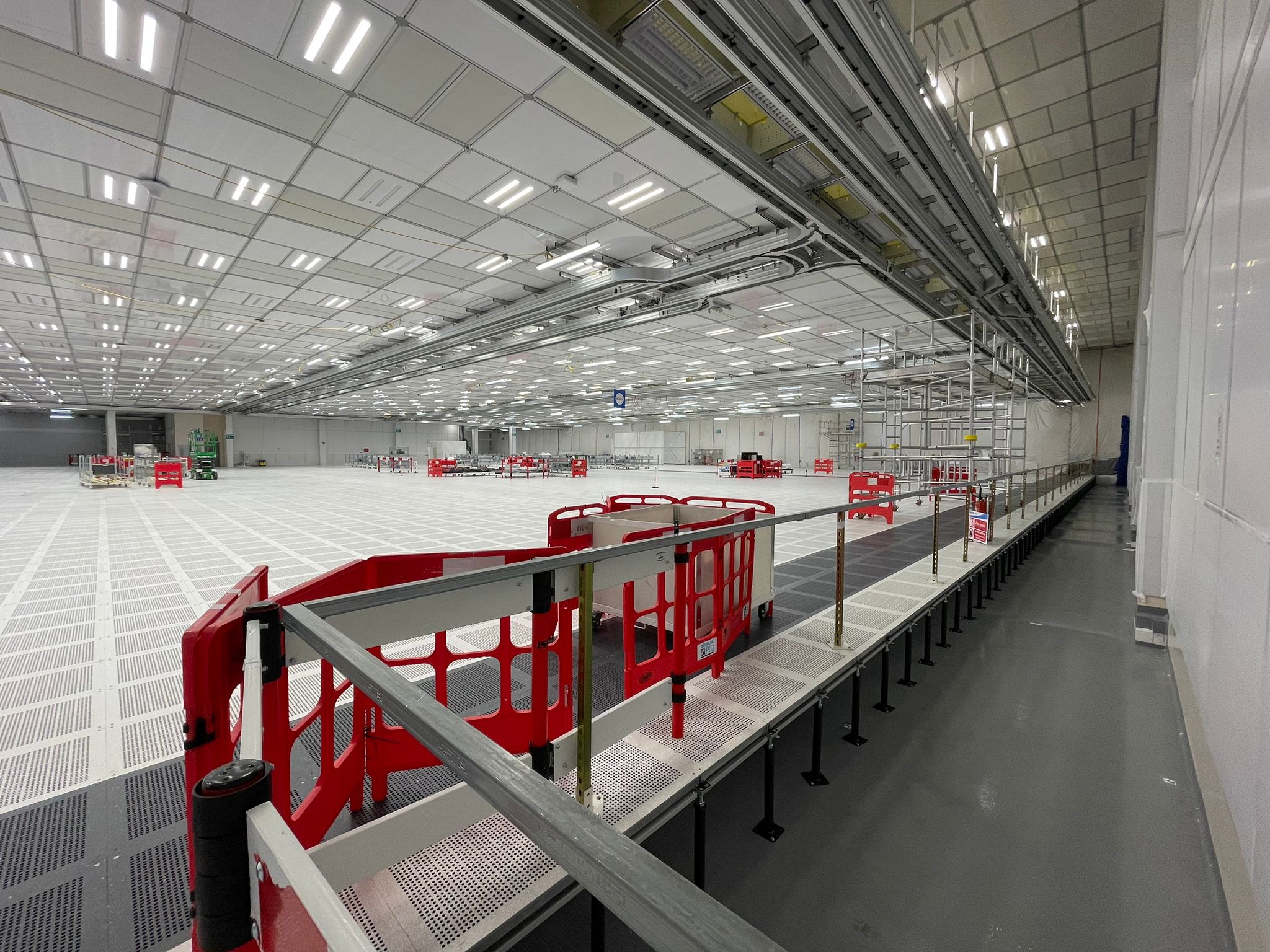 ROSS Engineering was awarded the construction of a permanent raised metal structural cleanroom modular floor covering an area of over 2,273m². Each individual floor module weighed approximately 2.2 tonnes, with a total installed structural weight of 484 tonnes. The system consisted of a powder-coated structural steel frame, finished with a 10mm mild steel top plate overlaid with 7mm aluminium.